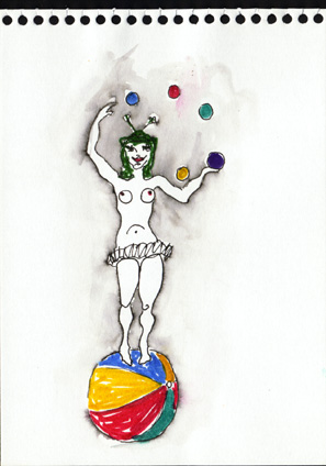 mit fünf Bällen jonglierte.