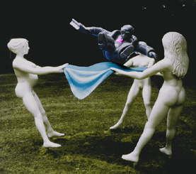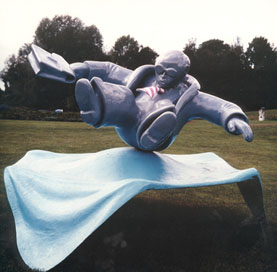 Mein Freund Herbert bei der Tuchfühlung Stahl und Polyesther. Durchmesser 6 m Hoehe 3,5 m. Diese Gruppe ist 1997 fuer die Ausstellung TUCHFUEHLUNG in Langenberg entstanden. |