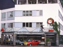 Brunnenfigur Kupfer getrieben Hoehe 2,20 m Bei der Ausfuehrung dieser Figur hat mir statt eines Bronzegiessers mein Bildhauerkollege und Freund Eckhard Herrmann aus Eberswalde mit seinen wunderbaren handwerklichen Faehigkeiten zur Verfuegung gestanden. Die Muehle ist ein Ort, wo der Schalk, der Muellersknecht, arbeitet. Im allgemeinen deutschen Sprachgebrauch versteht man unter einem Schalk einen Menschen, der in der Lage ist, anderen die Wahrheit zu sagen, der es vermag, mit einfachen Mitteln und oft auf humorvolle oder gewinnende Art etwas in Bewegung zu setzen. Hin und wieder, aber selten, trifft man Menschen, die solche Faehigkeiten haben. Einer mit Namen Muehlen ist mir begegnet, der nicht nur in Schalksmuehle viel bewegt hat. Vielleicht traegt deshalb meine Figur auf dem Sparkassen-Brunnen, die auf spielerische Weise mit ihrem Wasserbecher ein Muehlrad (als Sinnbild fuer Industrie, Gewerbe und Wirtschaft) in Bewegung setzt, den Buergern von Schalksmuehle vertraute Zuege . . . |