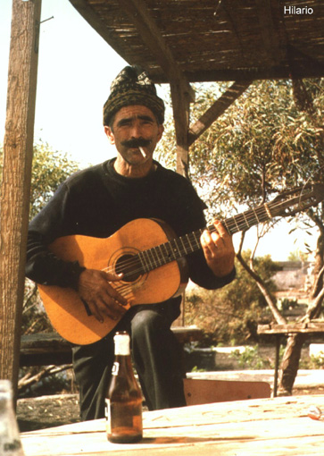 Irgendwann in den letzten Jahren kam ich einige Male nach Lanzarote. Dort traf ich Acenzio, einen keltischen Druiden, der mit fünfunddreißig Hühnern, sieben Ziegen und einem Faß vom besten lanzaroter Wein aus der Vulkanasche in einem halb verfallenen Haus an der Küste lebte. Ich begegnete ihm erstmals zusammen mit Iwan, einem Schiffskoch aus Werdohl, der gerade für ein paar Monate auf den kanarischen Inseln abgeheuert hatte und mit seinem riesigen Koffer an der Straße stand. Iwan wußte nicht so genau, wohin er eigentlich trampen wollte, er hatte von einem anderen Matrosen nur eine ungenaue Adresse mit der Aussicht auf einen Job im Süden der Insel. Da ich dieses Gebiet selber noch nicht kannte, erbot ich mich, mit meinem geliehenen Jeep diesen Platz zu suchen. Es kannte zwar niemand die Adresse, aber auf der Suche lernten wir Hilario und seinen Bruder Acenzio kennen.